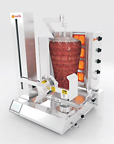 Modell S - effekt på 0kW. POTIS - Döner, Gyros. Our grills combine successfully long Greek experience with German technology, claiming a high quality level. Självskärande kebabgrill.