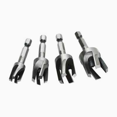 Utbytbara försänkare : Ø 1 och mm. Luna Försänkarsats för trä. Borr, handborr, vrickborr och dragborrverktyg. Själva träpluggen, tränageln, kan göras på många sätt. Ska nog fungera med pluggstorlek för resp hål för alla storlekarna även om jag bara provat den minsta försänkaren med färdiga 10mm plugg.